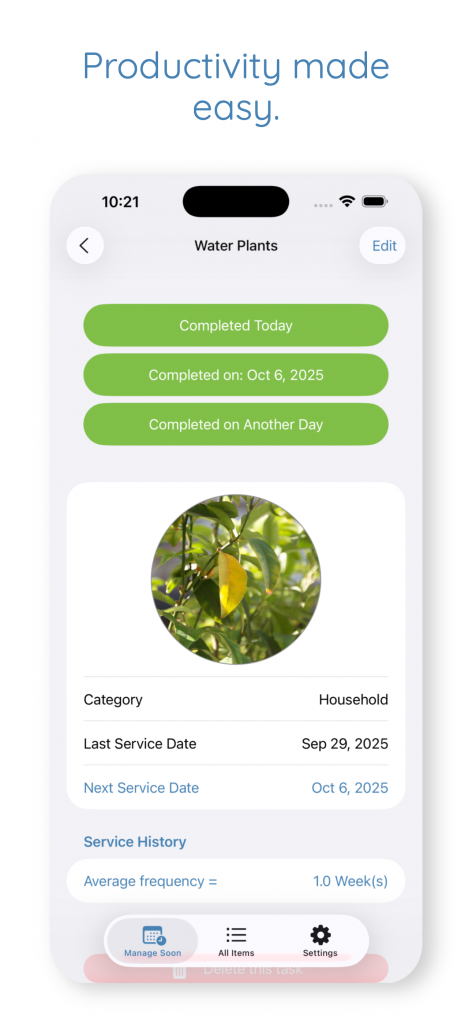 "This app is life-changing! It makes juggling all of the maintenance and service tasks associated with a home, a car, my health, my children and/or pets' care, etc. so much easier! I'm so glad I got it!"
